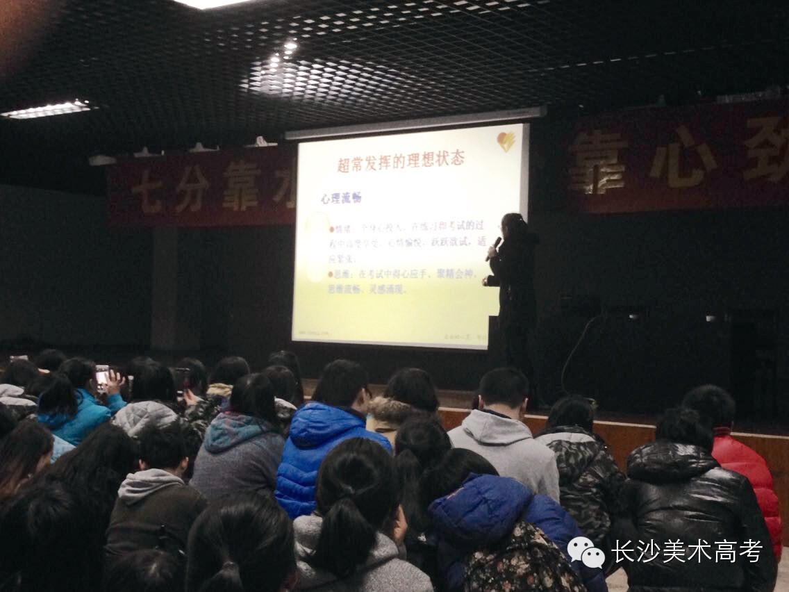 12月9日晚,黄红蓝艺术培训学校召集全体学生开展了一次心理讲座活动,联考在即,此次讲座的主要目的是放松学生紧张的心理,调节压抑的情绪,让学生们以健康向上的心态来备战联考!