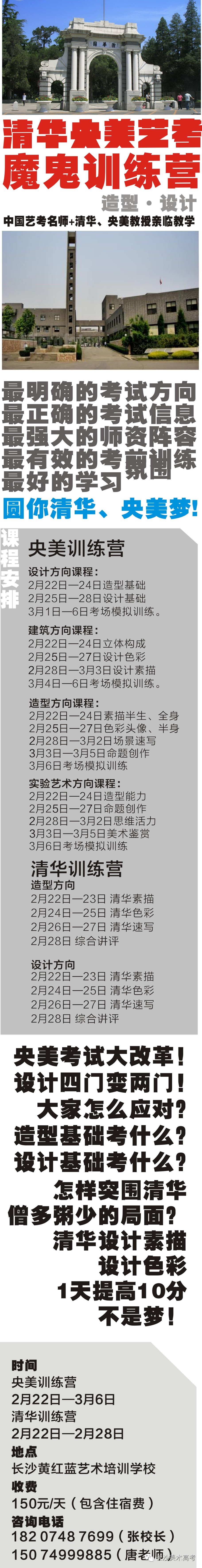黄红蓝 清华、央美艺考魔鬼训练营即将开训!