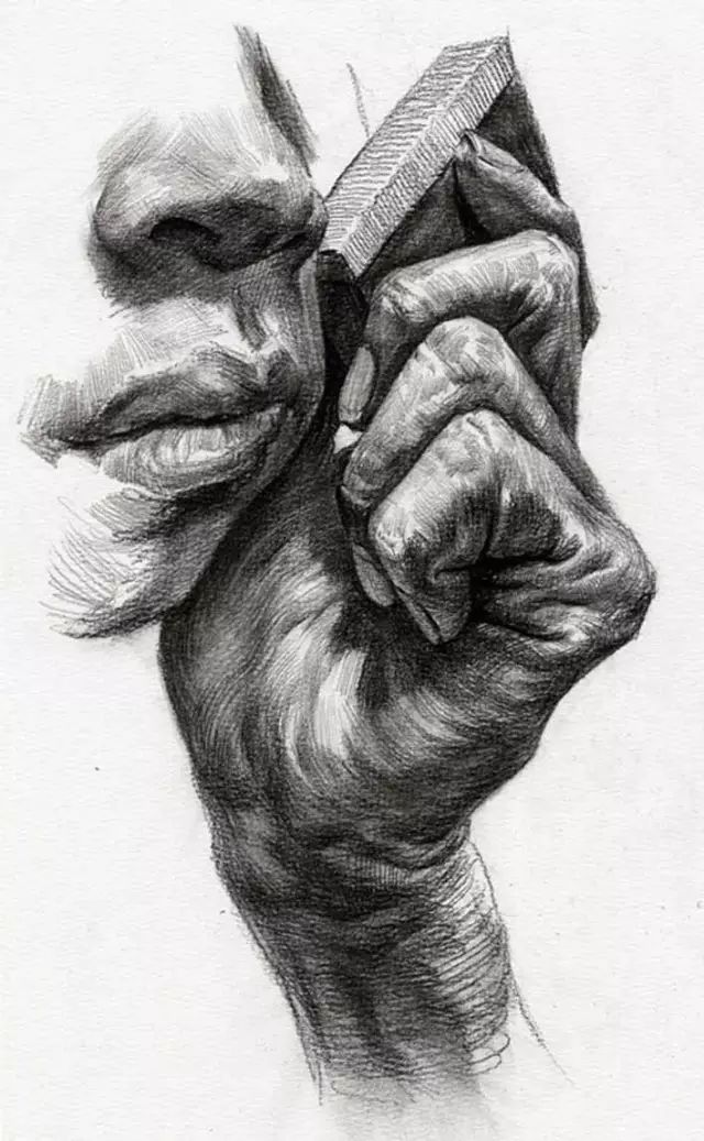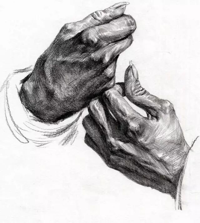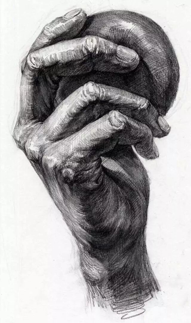 在人物素描中,手部的画法至为重要。这组关于手的素描拥有各种各样的动作和素描手势,每一副都针对不同形态的手部进行了细致的刻画,是学些画手部素描的上佳素材。