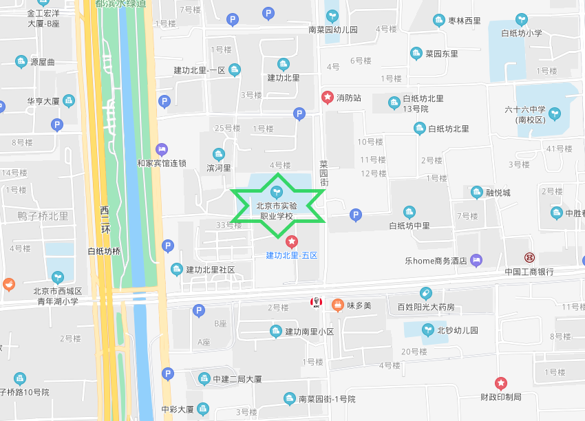 乘车路线:10、83路南菜园站;423、395、56路建功北里站;410、49、5、122、381、937、特12路白纸坊桥北站往东